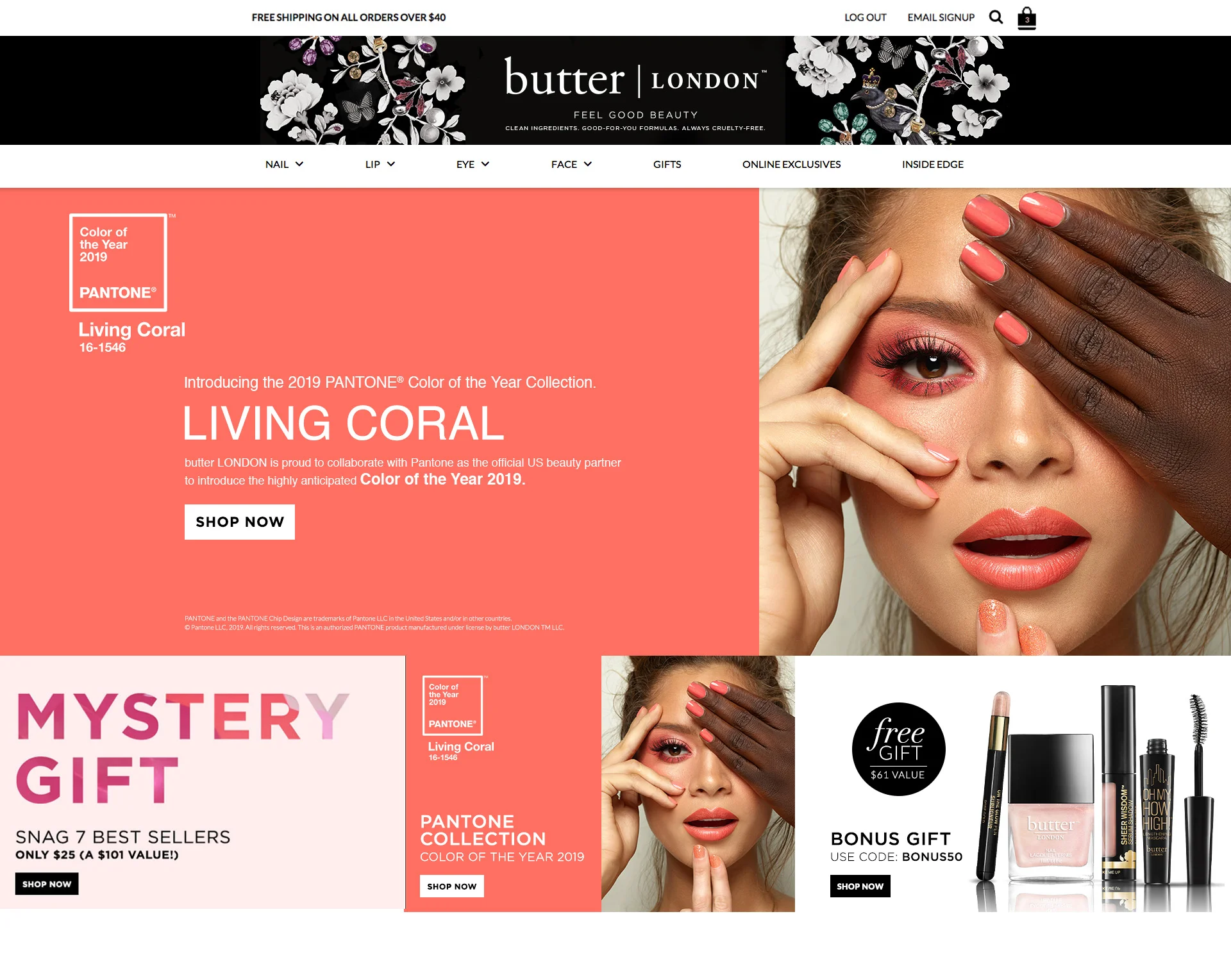 In a collaboration with Pantone, butter LONDON launched three nail lacquers and a lip gloss in the the Pantone Color of the Year, Living Coral.
